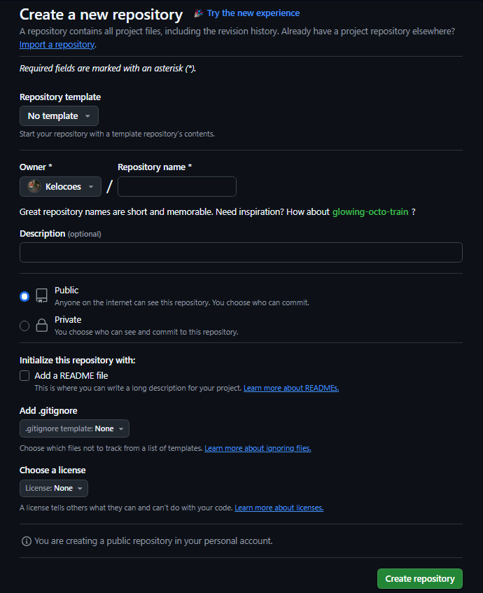 - Descripción (opcional): Agrega una breve explicación sobre el propósito del repositorio.